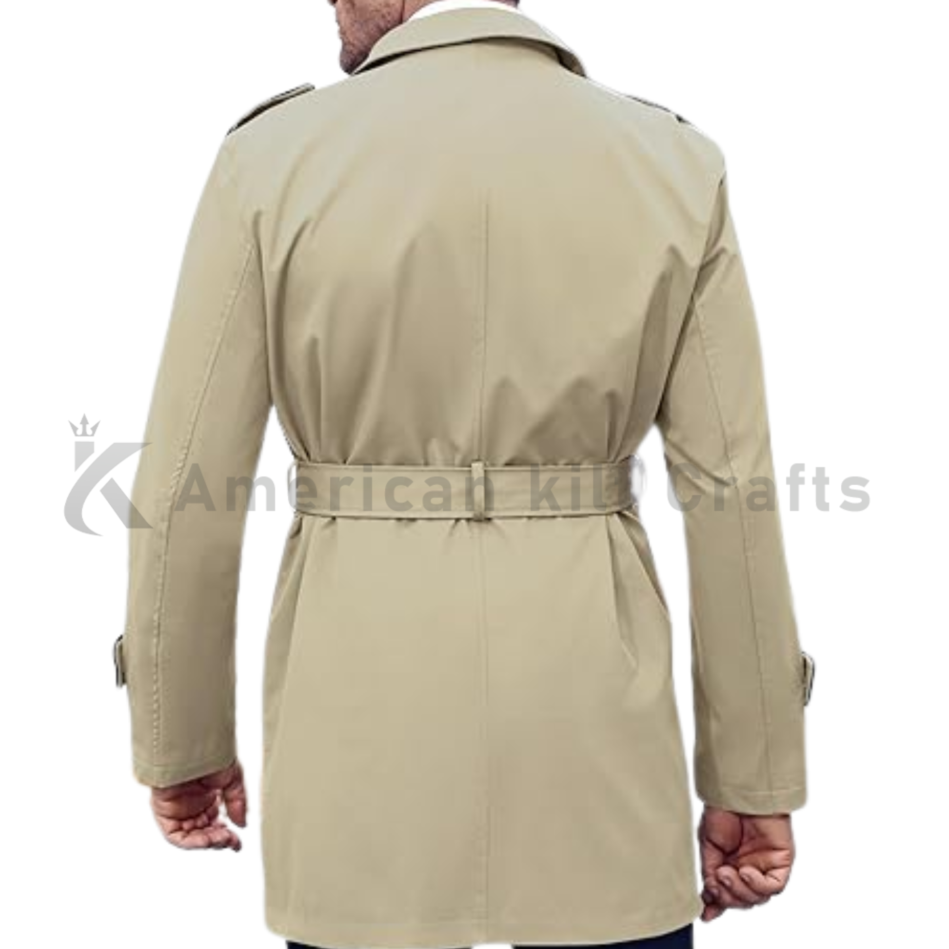 A men’s slim fit trench coat designed with a double-breasted front, notched lapel, and belted waist. This lightweight, windproof overcoat offers a clean and modern look, suitable for daily wear, work, travel, and casual outdoor use.