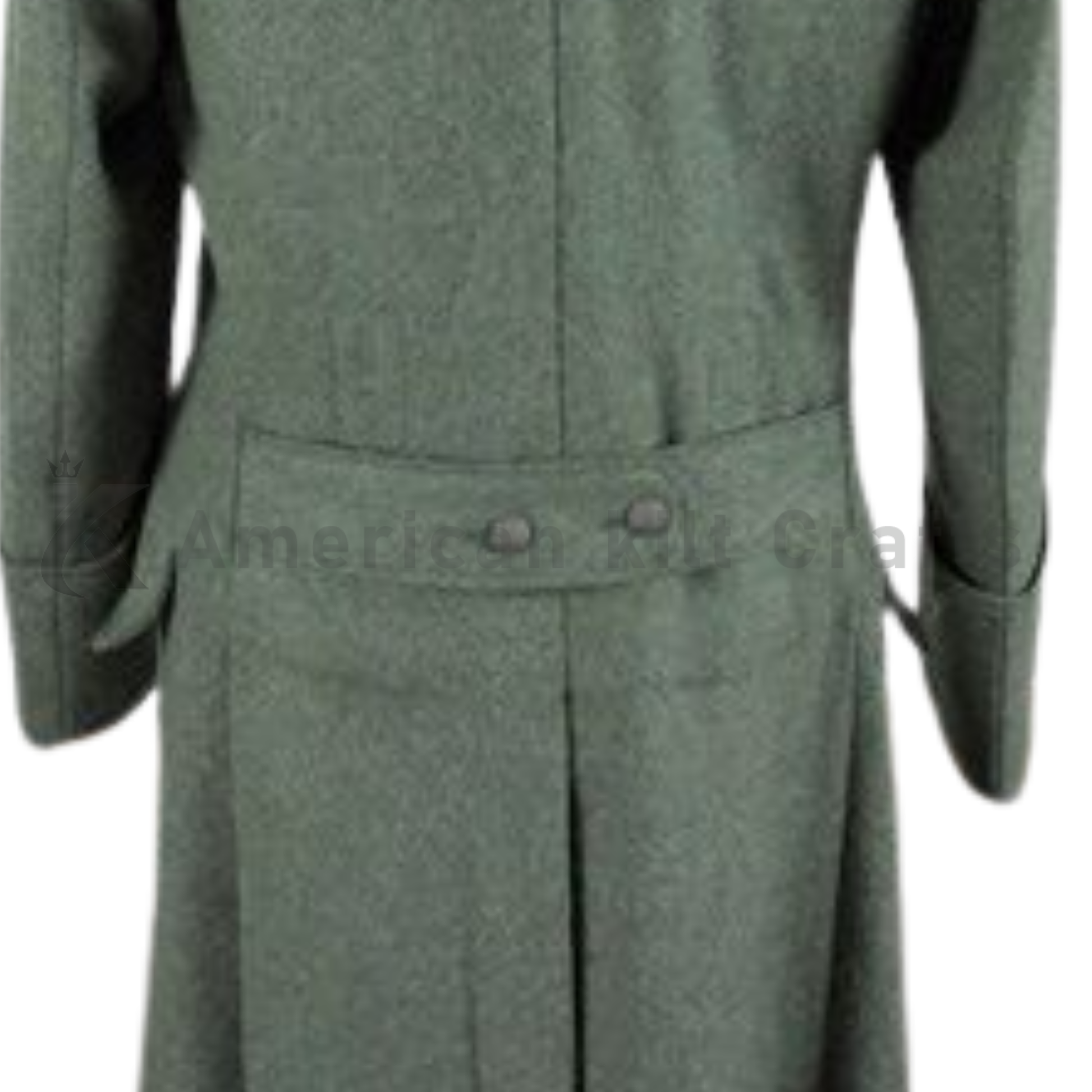 A replica of the German M42 Feldmantel greatcoat used by ground forces in the later stages of World War II. This double-breasted military coat reflects the simplified late-war design, offering an authentic historical look.