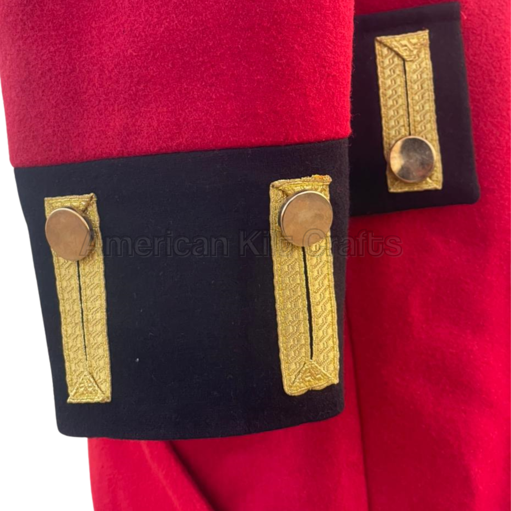This 1789 Royal British Redcoat Tailcoat is inspired by classic lancer and officer uniforms. Made from premium wool fabric, it features a bold red color with black details and gold buttons for an authentic historical look. Perfect for historical reenactments, cosplay, theater shows, weddings, or costume parties.