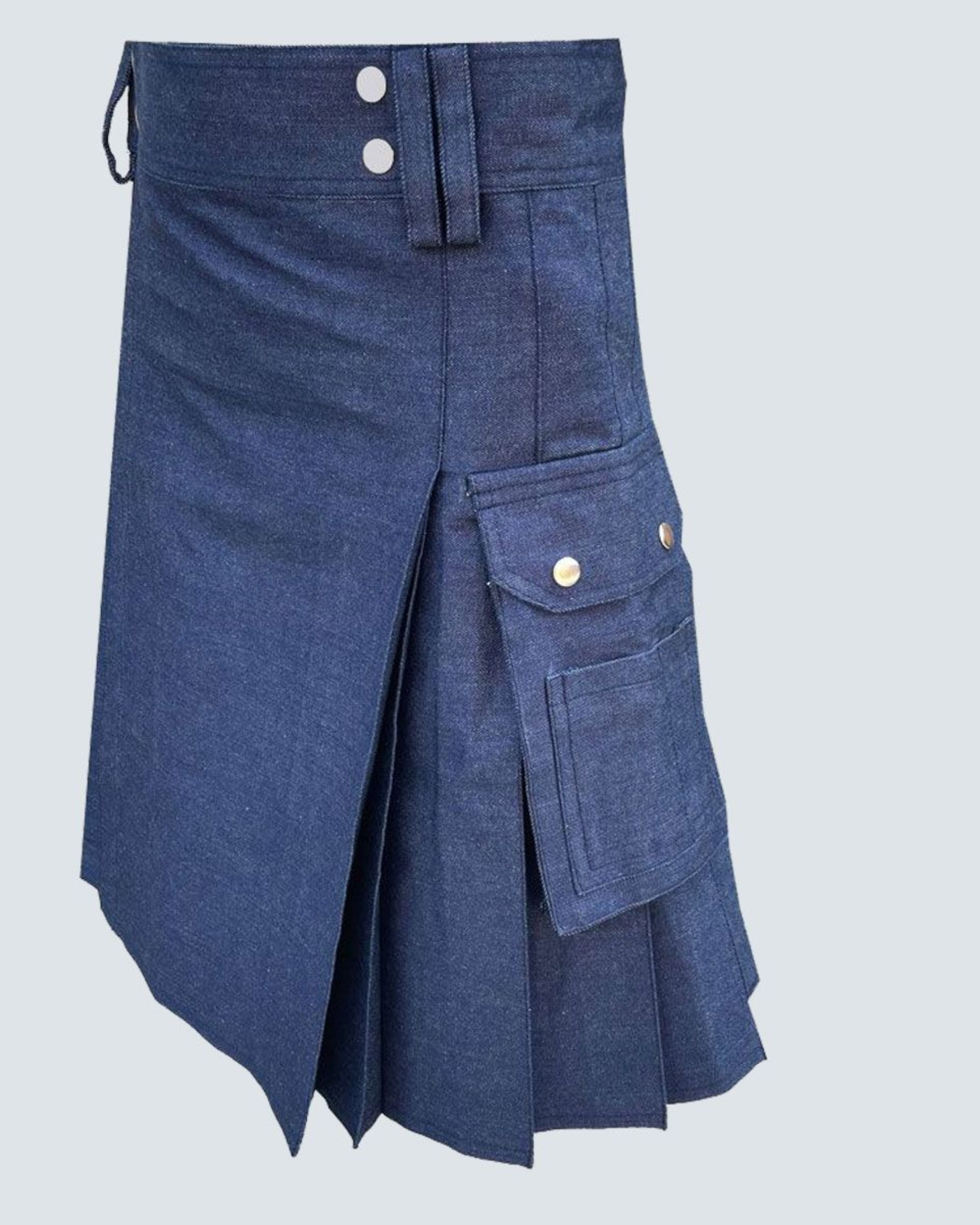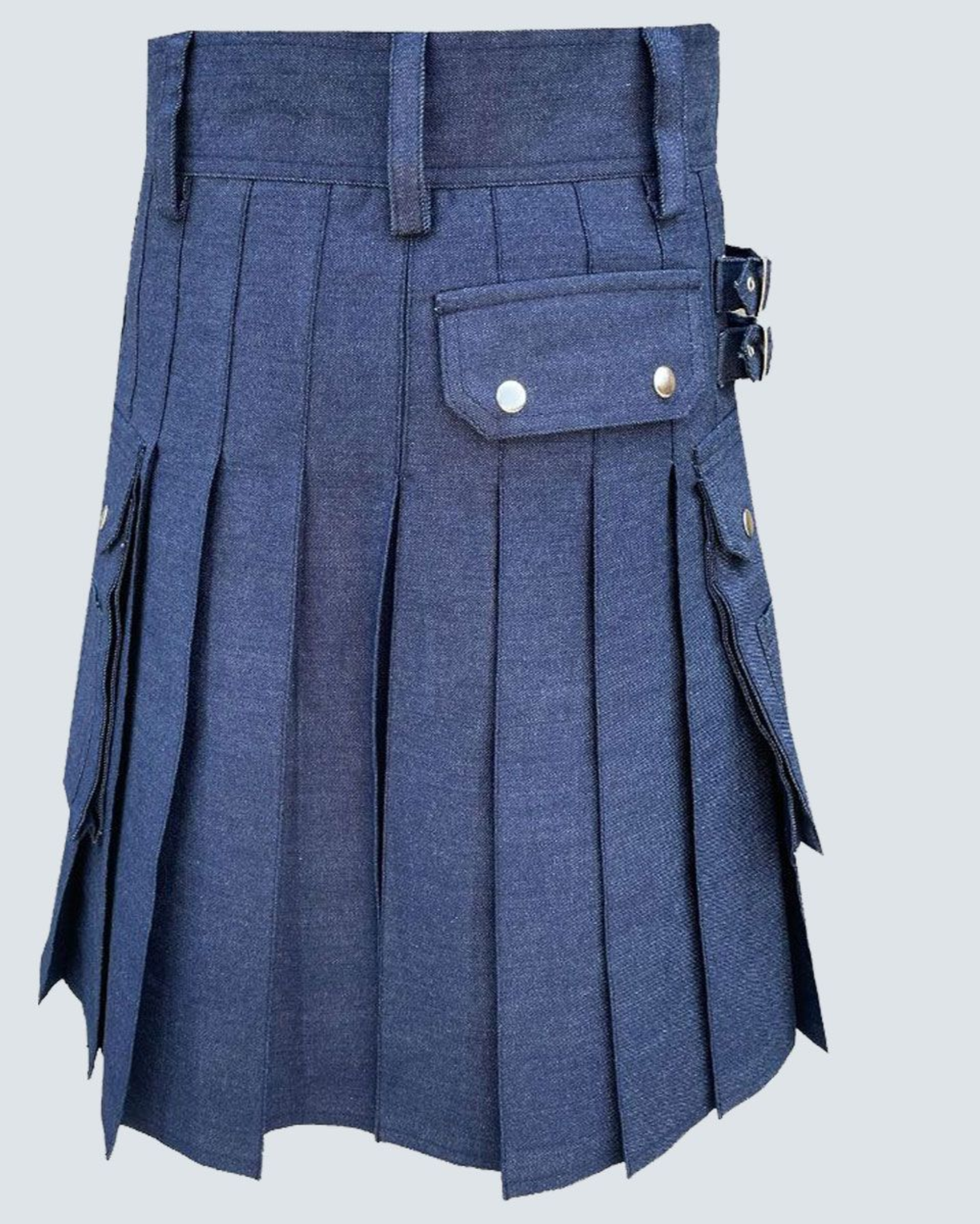 The Blue Denim Utility Kilt is made for people who want comfort and style. It’s great for work, outdoor use, or everyday wear.
