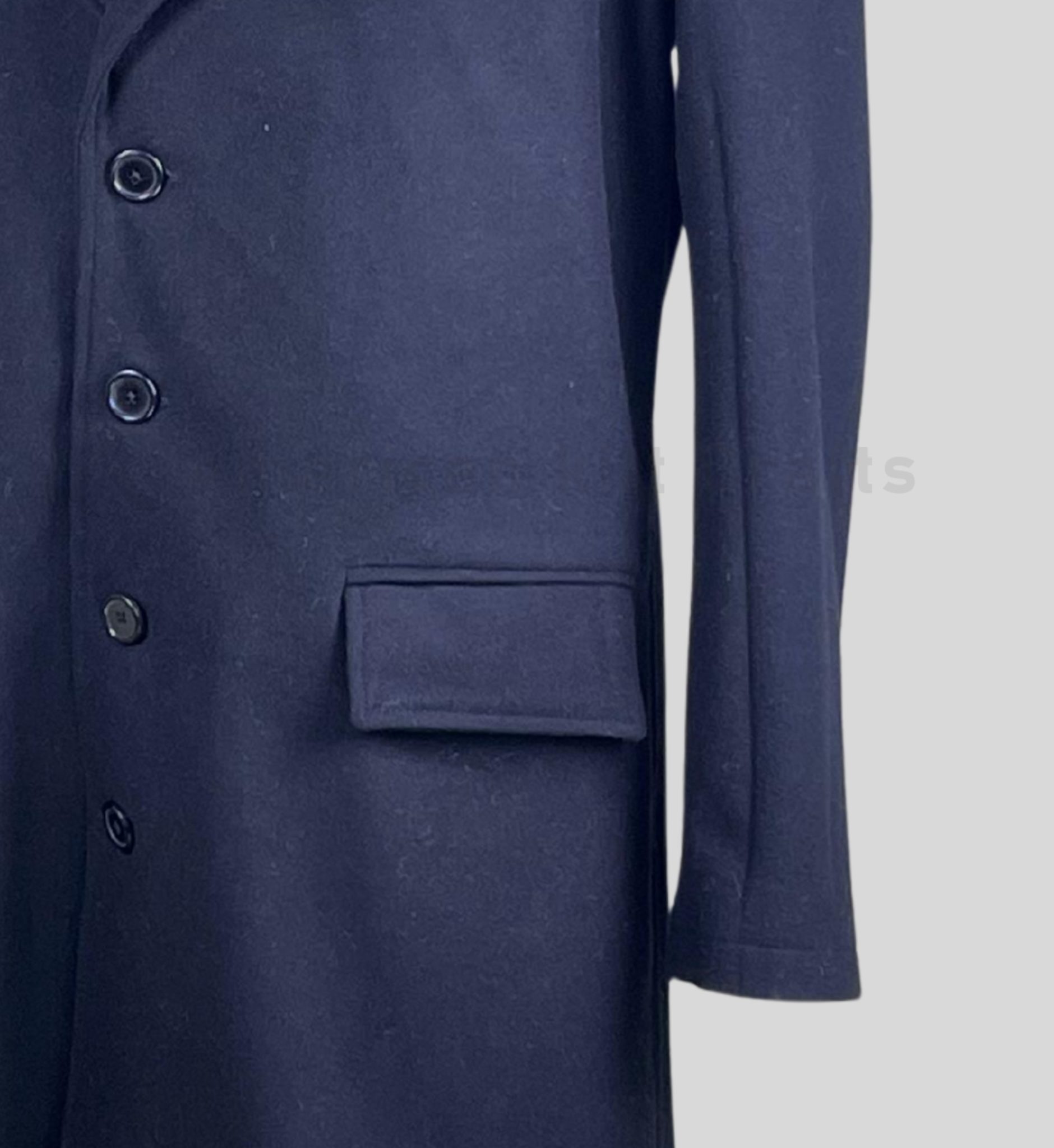 Men’s Dark Blue Wool Long Overcoat | Classic Chesterfield Style Winter Coat