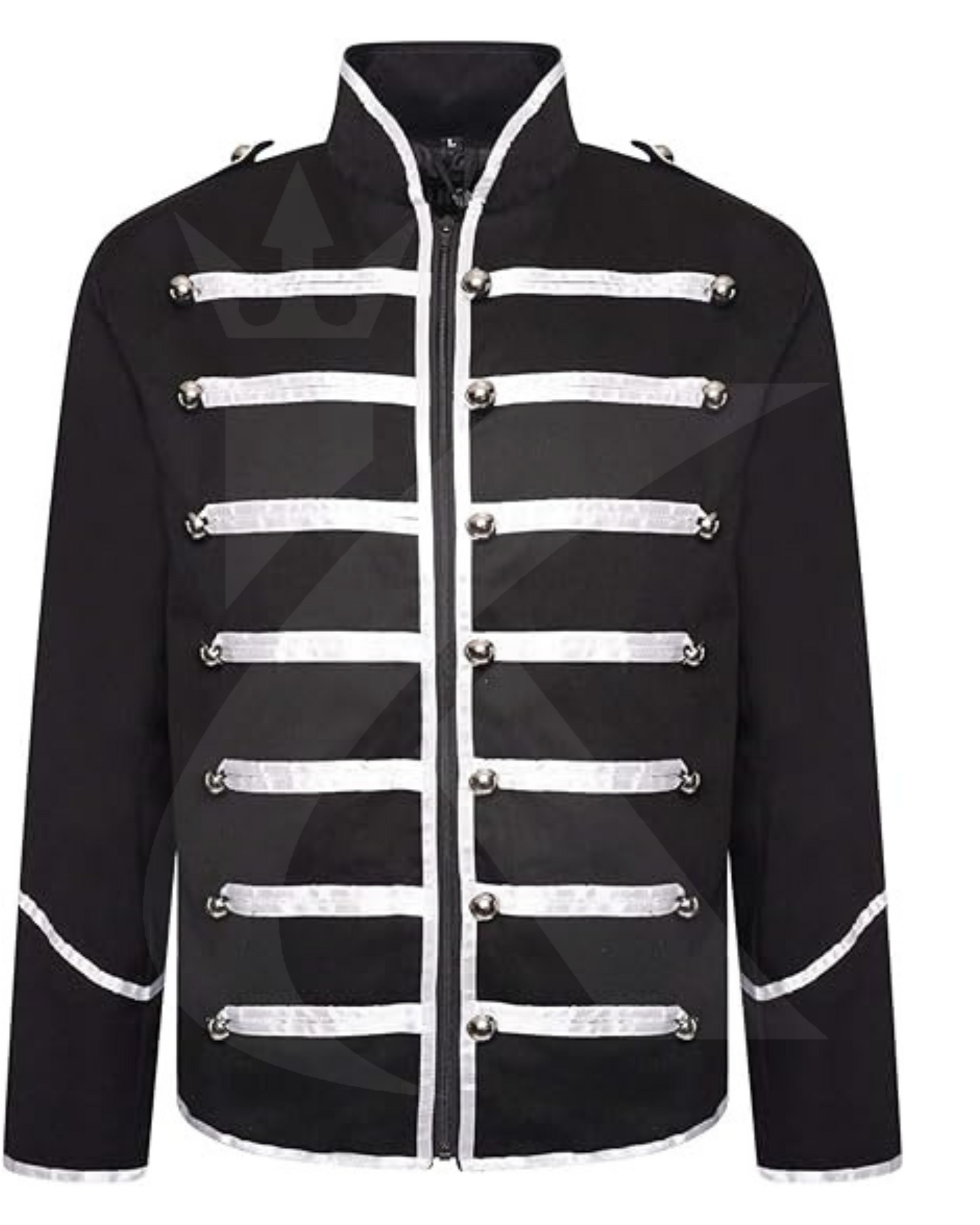 - Design: Features intricate silver trim, decorative metal buttons, and a structured stand-up collar for a classic military look.