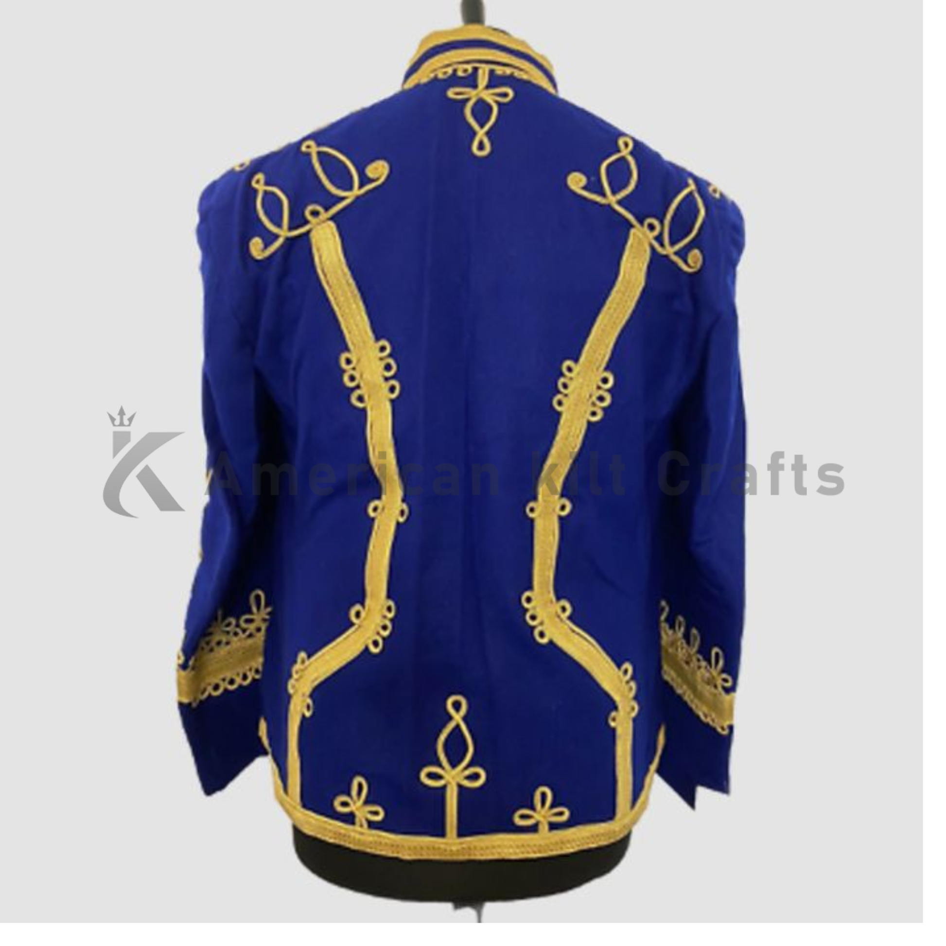 Design: Gold braided chest front, cuffs, and sleeve detailing