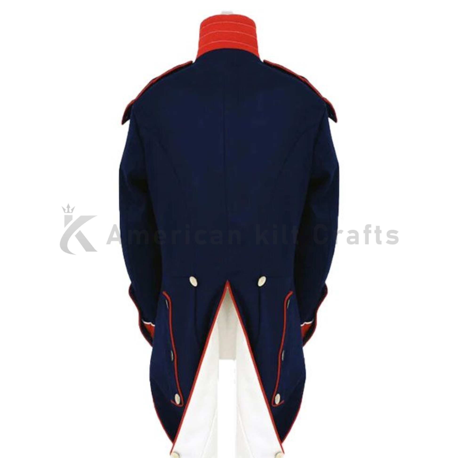 This Civil War–inspired Napoleon military jacket is crafted from heavy wool and designed in classic British war coat style. Featuring a bold navy tone with elegant braiding on the chest, embroidered sleeve cuffs, and brass button detailing, this single-breasted jacket reflects strength, leadership, and timeless military heritage.