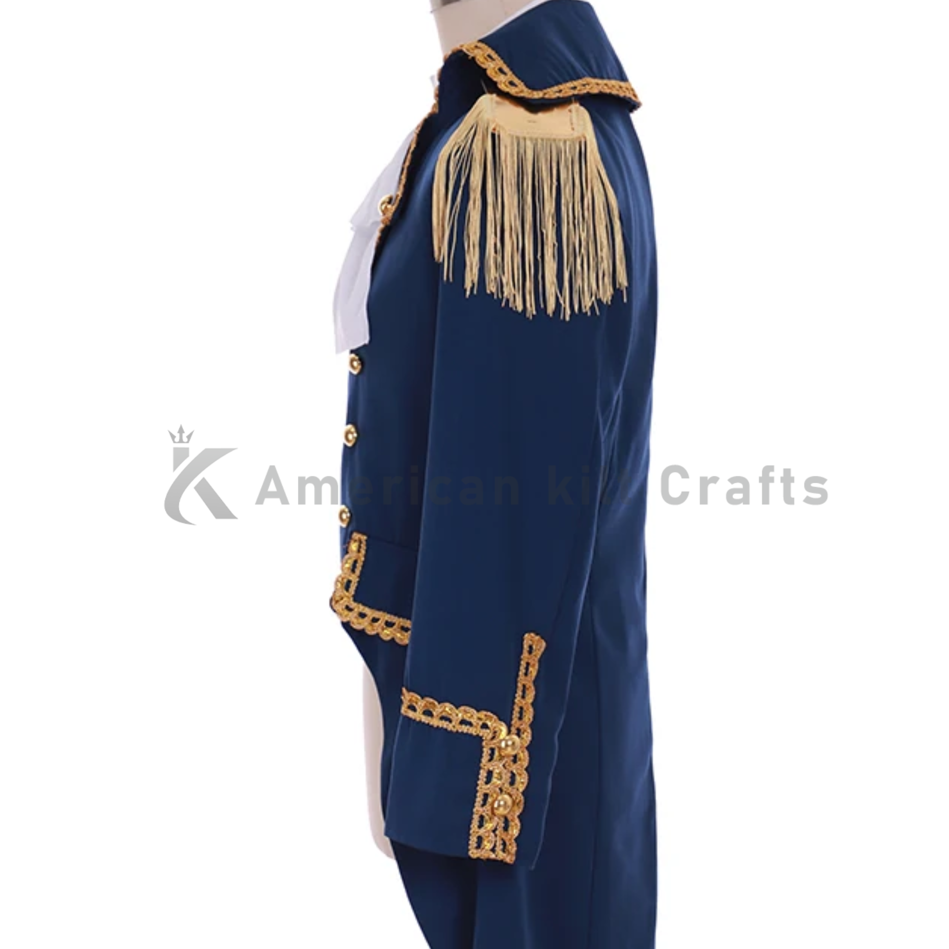 A men’s historical colonial tailcoat jacket inspired by Hamilton and Victorian steampunk style. This handmade frock coat is crafted with detailed uniform cloth construction and designed to deliver a strong vintage and theatrical look for costumes and themed events.
