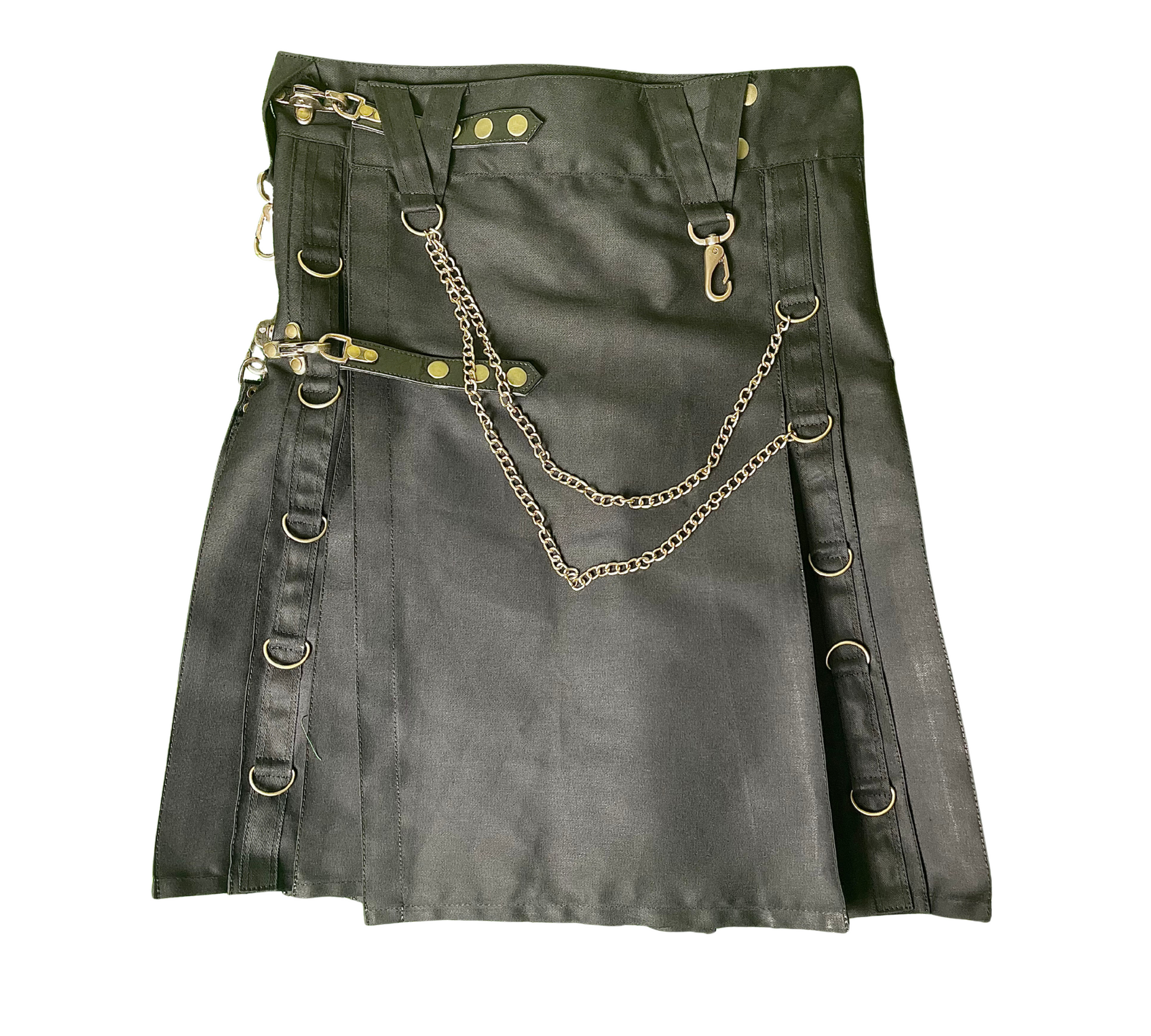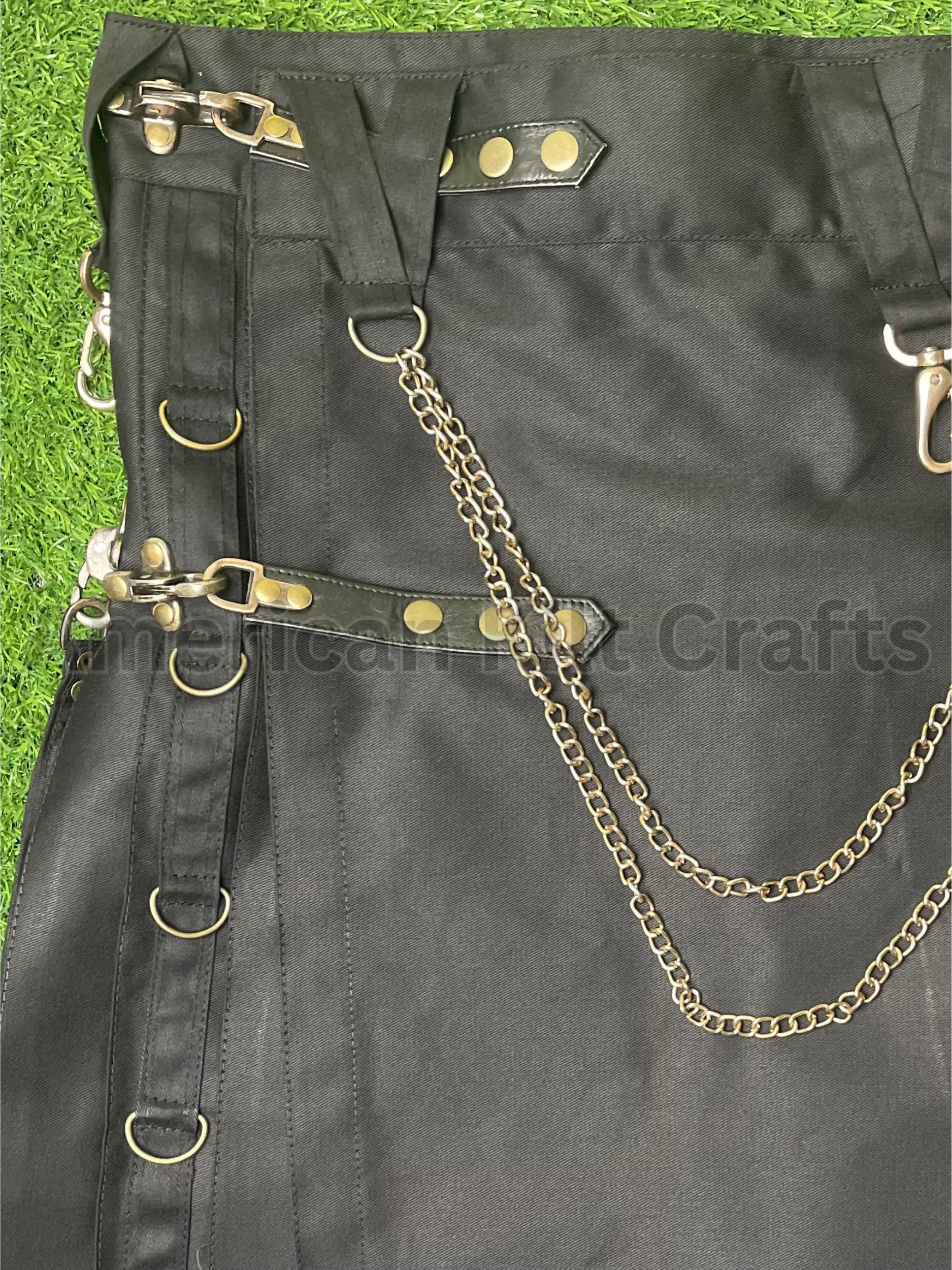Men's Modern Utility Kilt | Black Tactical Cargo & Gothic Chain Styles