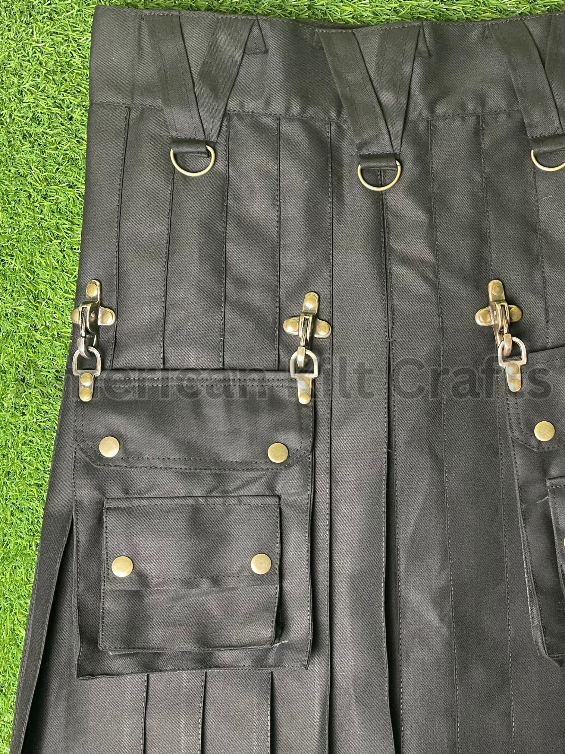 Upgrade your style with this practical Men's Black Utility Kilt. It blends classic kilt looks with modern features, making it great for work, outdoor fun, or everyday wear. Built tough with plenty of storage, it's durable and handy.