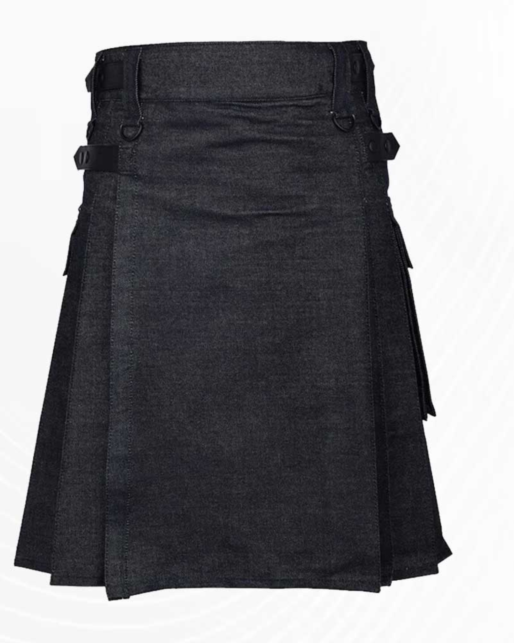 Experience the perfect blend of tradition and modernity with our Premium Scottish New Black Denim Kilt. This stylish garment reimagines the classic kilt for the contemporary man.